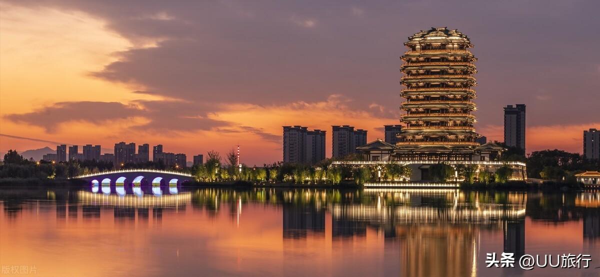 被誉为“天下首府”的开封府,与包公西湖的包公祠相互呼应,形成了“东府西祠”、楼阁碧水的壮丽景观。入夜后的清明上河园便是东京汴梁,再现虹桥、上善门、茗春坊、丹台宫、拂云阁等众多瑰丽雄伟的建筑。
