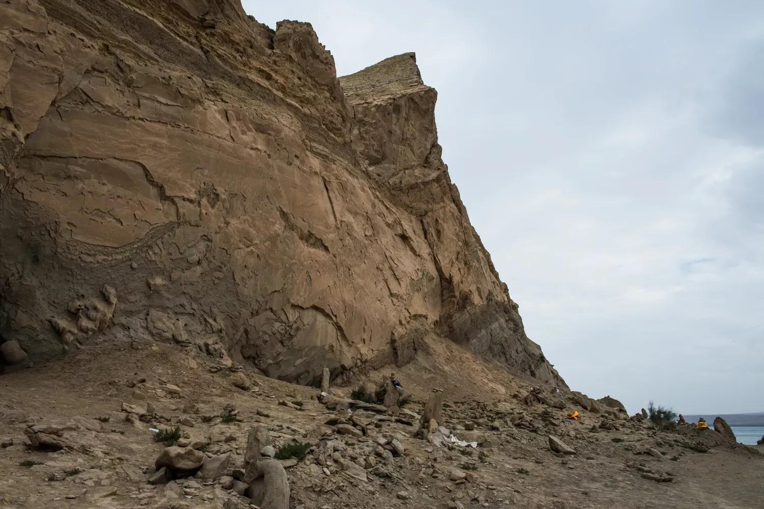 而可鲁克湖为淡水湖,其间有一条叫巴音河的水流相连,但水质泾渭分明。在托素湖的东北角有一座白山,当地人称作白公山。“外星人遗址”和众说纷纭的神秘的铁质管状物就坐落在白公山下的岩洞里。记者一行到达白公山周边时,连续几天罕见的暴雨刚刚退去,高原的烈日和紫外线像雪崩一般地爆发在头顶,把地表的一切都赤裸裸地暴露无遗。呈现在眼前的情形如同一部美国科幻影片所描述的火星表面,火红色的岩石反射着刺目的光斑,一簇簇干旱的沙漠植物顽强抵抗着侵袭而来的罡风。