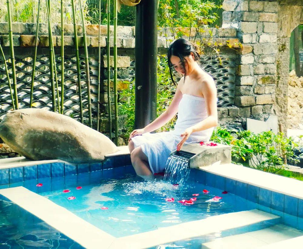 咸宁万豪温泉谷又名沸潭,因高品质泉水,含有丰富有益矿质。在唐代即已著称,至今有1400年历史。这里不仅有精致的室外温泉区,还有按东南亚风情精心打造的室内温泉,布景雅致,亭台错落,鄂南特色风情的细节都能在温泉谷内打量到。