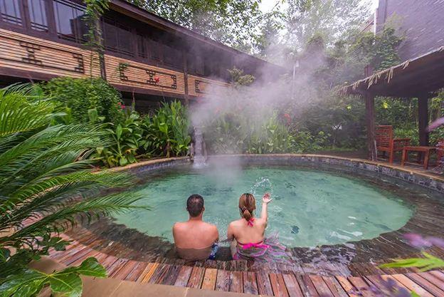 汤池温泉旅游景区的温泉中,不仅富含“矿泉之精”氡元素,还含有48种对人体有益的矿物质和微量元素。拥有128个天然泡池,各具特色;池区树木众多,绿化覆盖率高达80%;配有免费的茶水、浴巾、拖鞋。除了温泉池,这里还有温泉水的大喇叭、三彩滑道、冲浪池、恒温游泳馆等四季都能玩的水上欢乐世界。